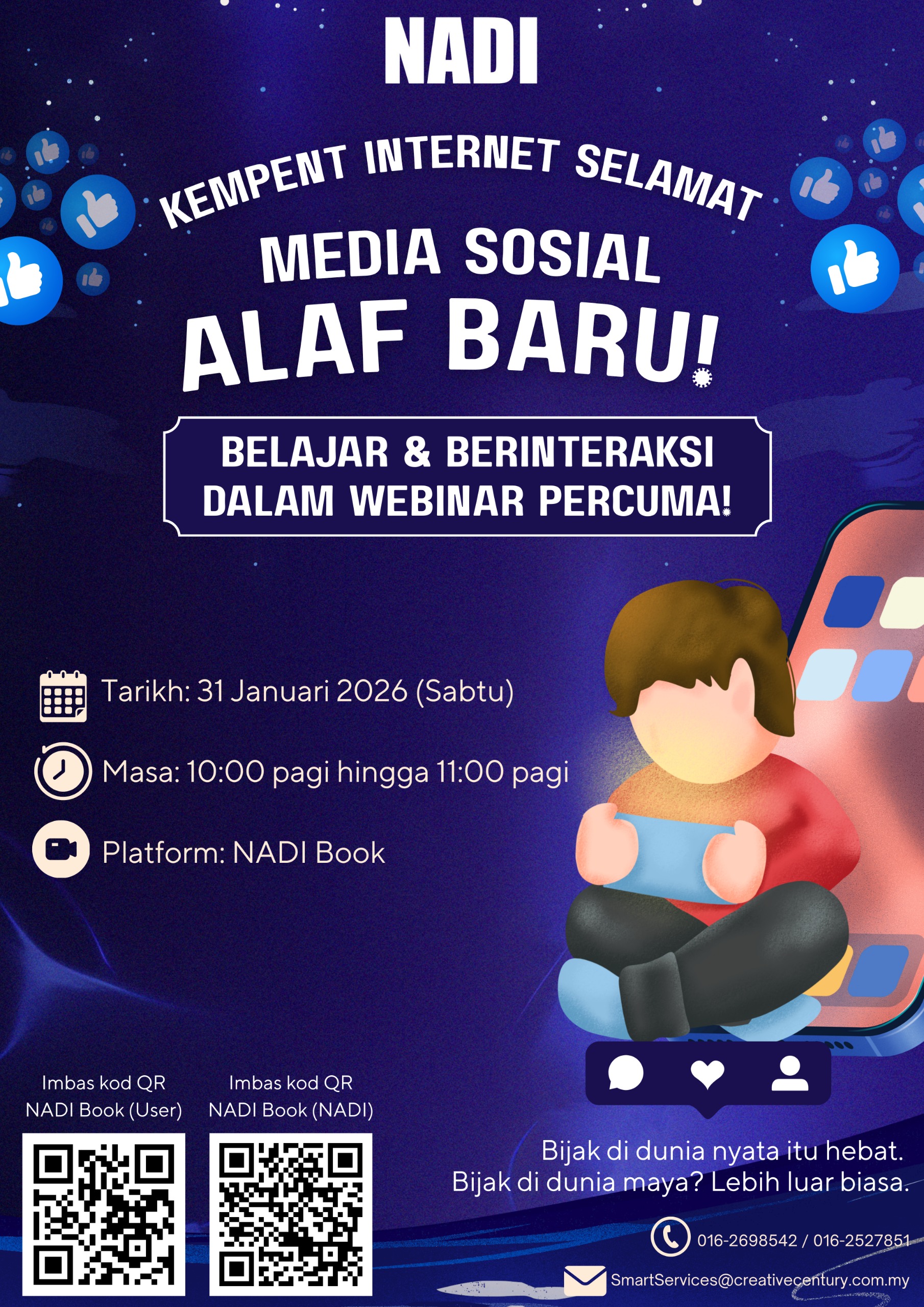 Mari kenali Media Sosial Alaf Baru dan gunakan teknologi secara selamat serta beretika. ๐ Butiran Webinar๐ Topik: Media Sosial Alaf Baru๐ Tarikh: 31 Januari 2026 (Sabtu)๐ Masa: 10.00 pagi โ 11.00 pagi๐ Platform: Atas talian (NADI Book)๐ Pautan: https://nadibook.my ๐ฅ […]