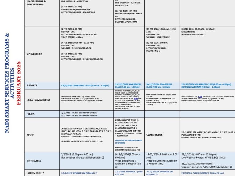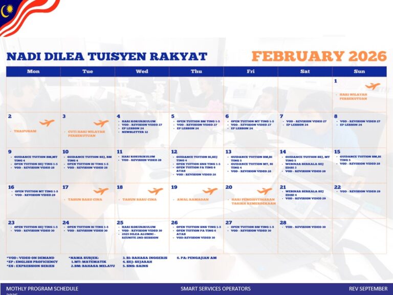 JADUAL NADI DILEA TUISYEN RAKYAT – FEBRUARI 2026