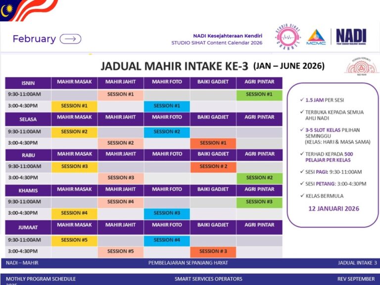 JADUAL NADI MAHIR INTAKE 3 – FEBRUARI 2026