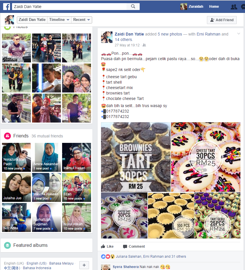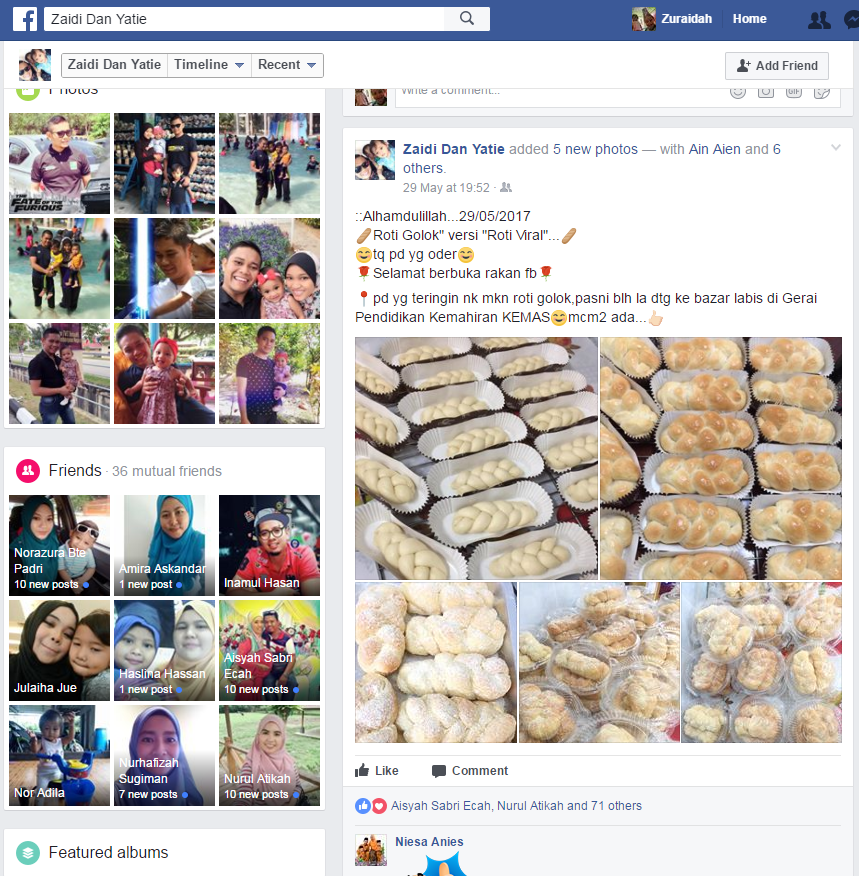 Melalui kelas latihan keusahawanan dan kelas e-usahawan anjuran MDEC yang dibimbing oleh Pusat Internet Felda Maokil 1 dan MDEC, beliau kini telah mempromosikan sendiri produk beliau di facebook dan melalui kumpulan whatsapp tempatan (Maokil Food Delivery Group Whatsapp). Pelanggan beliau terdiri dari penduduk seluruh Felda Maokil, jabatan-jabatan kerajaan sekitar Labis daerah Segamat serta Chaah, Muar dan Kluang, Johor. Beliau menjalankan khidmat penghantaran makanan bagi menambah baik jualan sedia ada. Kini pendapatan bulanan beliau mampu mencapai sehingga RM1000 – RM3000 sebulan mengikut musim.